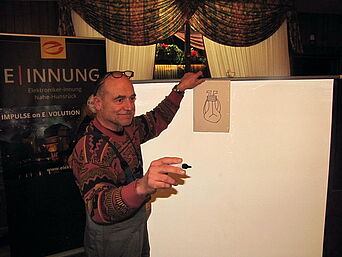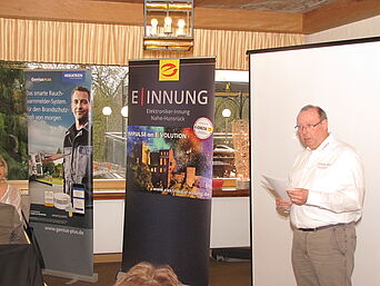 Hr. Alfred Wenz, Kreishandwerksmeister, richtete ein Grußwort an alle Teilnehmer. Hr. Wenz lobt die Arbeit der Elektroniker Innung und sprach über das aktuelle Thema "Antellung von Arbeitskräften mit Migrationshintergrund"