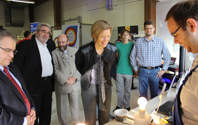 Wieviel Energie eine Glühlampe und eine LED-Leuchte verbraucht, konnten Jugendliche am Stand der Elektro-Innung erfahren. Auch Fraktionsvorsitzende Julia Klöckner von der CDU im Landtag konnte sich von der „Energiewende“ überzeugen.